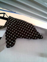 前回、主人のYシャツの襟にドットの襟をつけて、自分のシャツにリメイクした時は、元の襟の上から、布を当てて型紙をとって、縫い付けました。