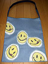 お友達のお嬢さんに作ったバッグです。たぶんユーズドクロスであろうスマイルの生地を見つけて大興奮!!