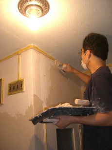 | 壁紙はビニール製でした。珪藻土をしっかり定着させるためにはまずシーラーを塗ってから、珪藻土を塗らなければなりません。 | ||